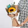 Brighten someone’s day with this radiant bouquet featuring a bold sunflower paired with fresh eucalyptus for a natural, graceful touch. Wrapped in off-white tissue and a dark brown sheet, it strikes the perfect balance of warmth and elegance. Hand-tied with a white ribbon, this bouquet is a heartfelt way to express gratitude and admiration; a gift as thoughtful and inspiring as the person who receives it.