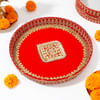 Red Beautifully Embroidered Karwa Chauth Pooja Thali Set