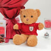 Win their hearts with this enchanting gift hamper. A bouquet of vibrant red roses, wrapped in a red frosted sheet and hand-tied with a delicate red organza ribbon, beautifully expresses love and passion. Complemented by a 10-inch teddy bear and a Velvety Bar mixed berries chocolate, this thoughtful hamper is the perfect romantic gesture, making your loved one feel cherished and adored on this special day.