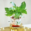 Said to attract wealth and positive energy, the Money Plant is cherished not just for what it brings but for the calm, rooted presence it creates. Planted in a 4-inch tall terracotta pot adorned with illustrations of a Mughal veranda, with peacocks, ornate railings, and carved pillars rising like poetry in clay. A simple way to invite prosperity and calm into the corners of your everyday.