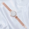 Experience timeless elegance with this rose gold women's watch and infinity knot bracelet set. The bracelet, crafted from zinc alloy, boasts an infinity knot design, symbolizing eternal love and connection. Its adjustable feature ensures a comfortable fit on your wrist, while the rose gold plating with matte finishing adds a touch of sophistication. Meanwhile, the watch is inspired by the Japanese Quartz movement, brass construction, and a 34mm white dial adorned with a delicate design. Complete with an adjustable strap, this set embodies luxury and versatility, perfect for any occasion.