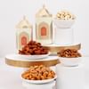 Infused with heritage charm and festive warmth, this exquisite Diwali hamper features a beautifully illustrated gift box with intricate floral and arch motifs. Inside, discover premium metal jars, a set of artisanal dry fruit sweets, a charming elephant-themed decor piece, a metal diya, and a festive tin container. Perfectly blending tradition and indulgence, this hamper makes a stunning gift for Diwali celebrations, whether for family or friends. Thoughtfully curated, it adds a regal touch to your gifting moments and captures the true spirit of the festival.