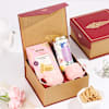 Elevate tea time with this thoughtfully curated premium hamper. Nestled in a classic paisley motif gift box, it features Mogo Mogo Blue Pea Flower Floral Tea set, offering a vibrant and soothing infusion. Complementing it are Masqa Almond Biscotti Fingers, perfectly crisp and nutty for a refined snack. Two pink VOLA Bloom porcelain tea cups add elegance and charm, making every sip a special moment. Ideal for gifting, this hamper combines luxury, flavour, and style, creating a memorable experience for tea lovers who appreciate both taste and aesthetic beauty.