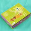 This set of five Rakhis have beautiful round bobs in golden gota patti work with colored thead beads at the sides. The colored thead beads are in colors of magneta, red, orange, green and blue. With the Rakhis is 400 gms of Doda Burfi.
