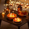 Adorn your Diwali festivities with these enchanting floating flower candles, beautifully presented in elegant lotus-shaped urli bowls. This set includes delicately crafted flower-shaped multicoloured candles, designed to gracefully float on water. When lit, they cast a warm, inviting glow that creates a serene and festive ambience, perfect for enhancing your home decor. The exquisite lotus urli bowls add a touch of traditional charm, making this a thoughtful and elegant gift for friends and family, bringing peace and light to their Diwali celebrations.