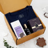 Celebrate the season of love by gifting your man this charming ensemble. This lovely hamper includes a men's t-shirt, Velvety Bar Dark Chocolate, and a men's perfume. Discover the Men's Bespoke Eau De Parfum, blending a burst of citrusy freshness with delicate florals like rose and jasmine, culminating in a captivating signature trail. Crafted from 100% cotton, this t-shirt boasts comfort and style, showcasing the word 'Love' alongside a captivating illustration.
