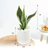 Infuse the splendour of nature into your homes with this wonderful plant. This snake plant comes in a sleek white-ribbed cylindrical vase, enhancing its elegance and charm. The indoor plant has beautiful dark green leaves with yellow edges and can live without water for days. It is widely known to purify the air and remove toxins. The plant requires minimal upkeep and can add a splash of colour to any space. Tip: Snake plants are not just beautiful houseplants, but they also have air-purifying qualities.