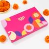 Mark the cherished bond of Bhai Dooj with this thoughtfully curated festive hamper. Presented in a vibrant designer gift box, it includes melt-in-the-mouth Soan Papdi bites, rich Date Barfi bites, and crunchy Roasted Salted Almonds. A chic Rosy Feather roli-chawal container adds a traditional touch to the celebration, making this hamper the perfect blend of sweetness, crunch, and festive rituals for your sibling.
