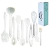 Our cute, quirky, colorful spatula set is here to get your kitchen essentials sorted all at once. Our confetti themed spatula set contains one tong, one oil brush, two spatulas, one noodle spoon, one ladle, one whisk and three cooking spoons. All spoons are made from 100% food grade silicone material. They are heat resistant, microwave and dishwasher safe.