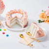 Delight your loved ones in the soft elegance of this Sprinkle Charm Cake, a sweet treat that captivates at first glance. Topped with delicate cream swirls, this cake exudes charm and sophistication. Edible little beads are sprinkled generously along the bottom, sides, and top, adding a playful sparkle to its design. With its light, fluffy texture and exquisite flavour, this cake is perfect for making any occasion extra special.