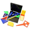 Losing your stationery is a problem for you too? We got your back!Our stationery puzzle kit is here to solve that problem forever. This stationery kit is in vibrant and attractive colors making it look artsy. It is a one-stop solution for all your stationery needs. From writing, noting, cutting, or measuring, it has tools for all. The main attraction of this kit is that all the tools are in a puzzle which makes it interesting even more. It is made of high-quality plastic and has hurt-free edges making it safe and lightweight for kids. This product includes 10 stationery products.