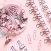 Elevate your desk and organize your it in style!Made of high-end and long-lasting metal, it is a must-have kit. All these clips come with a box with divisions so you can easily arrange and organize it together.This binder clip can be used for multiple purposes like to seal open packets, hold wires, or as a bookmark. A variety of paper clips can be used to organize papers, documents, cards, notes, and photos. Push Pins or tacks are handy to pin important messages on bulletins, cork boards, etc.This product includes 30 gem clips, 7 large binder clips, 20 push pins 15 small binder clips.