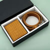 A coordinated gift set to make him look effortlessly stylish. A combo of tan brown croc print faux leather wallet and belt. The belt buckle comes with a chrome finish and the utility wallet is adorned with multiple pockets. Simply the ultimate gift that redefines elegance.