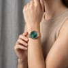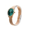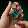 Confidence meets elegance in a timepiece designed to elevate everyday style effortlessly. The rich teal dial by Bruno Milano instantly draws attention, enhanced by shimmering crystal markers that add refined brilliance. Rose gold accents lend a luxurious contrast, while the slim profile keeps the look graceful and modern, finished with a sleek Milanese mesh band. - Material: Crafted using premium stainless steel and alloy, offering long-lasting strength with comfortable fit. - Dimensions: Designed in a balanced 25 x 30 x 15 cms silhouette that sits elegantly on the wrist. - Design Accents: Teal and rose gold tones paired with crystal hour markers create a polished feminine finish.