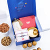 A hamper filled with divine rakhis and nutritious treats is a great match for celebrating this Raksha Bandhan. This hamper boasts two divine Lord Ganesha rakhis handcrafted by skilled artisans in metal in vibrant shades that will enhance your brothers' wrists. Accompanying the rakhis are besan laddoos and a gold design canister filled with salted-roasted almonds and black pepper cashews. Along with the rakhi, you will also receive roli-chawal and gold finish pooja thali so you can perform the ceremony with ease.