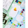 Pink or blue, making all your dreams come true! Wee re excited to introduce to you the first of its kind baby box. Whether you are looking for a gift for a baby shower or a mommy to be, our first impression kits have everything you need. The box includes a 100% cotton romper, wrapping cloth napkin, 4 x stencils, child friendly play doh, all necessary supplies including a set of non toxic paint, a mixing palette, and paintbrushes. This comes as a set of 11.