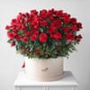 A bold scarlet statement of immersive volume and drama, artfully accented with an oversized bow balloon for a striking visual impact. Nestled in a beige round box, this luxurious grand gesture of red roses creates an unforgettable romantic surprise. - Total No. of Stems: 160 - Red Roses - Round Box, Beige - Red Bow Balloon - Dimensions: - Height: 89 cms / 35 inches - Width: 107 cms / 42 inches
