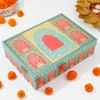 Delight your loved ones with a thoughtfully curated hamper that blends gourmet flavours with festive elegance. Indulge in centre-filled cookies, artisanal chocolates like Dark Divine and Nutty Delight, classic roasted almonds, cashews, and pistachios by Masqa, and crispy baklava pastries infused with Middle Eastern charm. Elegantly packed in a regal turquoise and coral box with traditional gold motifs, this hamper blends premium taste and timeless design. Ideal for festive gifting, weddings, or special celebrations, this box is a joyful fusion of indulgence, elegance, and festive warmth.