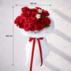 Created for Valentine's Day moments that call for passion and elegance, this striking floral arrangement delivers a bold expression of love. Eighteen velvety red roses are paired with delicate franklinia and fragrant kamini, forming a lush and dramatic composition. Wrapped in soft white frost film and finished with a rich red velvet ribbon bow, the arrangement is presented in a refined beige bag for a polished, premium feel. Perfect for meaningful surprises and grand romantic gestures, this bouquet celebrates love with intensity, beauty, and timeless charm. - Total No. of Stems: 32 - White frost film wrap & Red velvet ribbon bow - Product Dimensions: - H - 18 inches x W - 16 inches / H - 45 cm x W - 40 cm