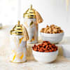 Timeless gifting calls for a touch of elegance and grandeur. This Diwali hamper is crafted to leave a lasting impression, beautifully presented in a beige leather wooden tray. Adorned with flowing tassels, pampas grass, copper-sprayed dried peonies, gold-sprayed leather ferns, and a striking gold motif, it exudes festive sophistication. Inside, gourmet delights await, peri peri almonds and salted cashews packed in canisters. Thoughtfully designed to reflect both luxury and tradition, this hamper is more than a gift it is a statement of love, care, and celebration that they will truly cherish.