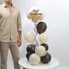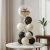 Celebrate him with a decor setup that blends confidence and charm. This stylish balloon arrangement combines bold accents, soft neutrals, and subtle sparkle to create an eye-catching display, perfect for birthdays, surprises, or any moment meant to make him feel special. - Includes - Bobo Balloon - 1 - Black Balloons - 5 - Retro Sand White Balloons - 12 - Silver BT Balloons - 2 - Balloon Stand - 1 - Notes - Balloons are air-filled and assembled at the location. - Please arrange a stool or ladder for ceiling access, as tape will be used for setup. - Remove within 24 hours to avoid marks. - Keep balloons away from heat and sharp objects. - Ensure adequate space, an electrical socket, and someone present during installation.