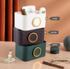 This multi purpose tissue box is perfect for your table andsure to change your organisation game. You can store your tissue, glasses , remote control and much more. It also comes with a hidden phone stand for you to watch your favourite show or attend a zoom call with ease. Just rotate the front circle and place your phone, place the circle back when not in use. This multipurpose organizer can also be used for kids who have onlice classes. Place their stationery on the rack so that they arent distracted during their classes. It is made of plastic. It comes as a single piece.