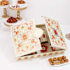 Combining traditional charm with festive joy, this hamper is ideal for Diwali gifting. It features a Peach Mandarin Candle and two stunning Orange Metal Diyas, creating a warm ambience. The hamper includes a selection of Roasted Salted Cashews, Peri Peri Almonds, Thai Chilli Cashewnuts, and Salted & Roasted Almonds, offering a mix of savoury flavours. Lebanese Baklava Sweets add sweetness, while Royal Brass Elephants and Golden Aura Canisters elevate its charm. Accompanied by a greeting card and decorative diyas, this hamper is a thoughtful gift for employees, clients, and business partners.