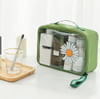 Organize all your travel essentials in our cute, floral travel pouch. This compact and classy pouch is a great way to organize all your essentials for everyday and also while on a trip or vacation. It has enough space to accommodate all the things you need. This travel pouch features a transparent cover so you can see what is inside. It has a handle like made at the top for easy carrying around and store. This travel pouch and the organizer can hold your skincare and haircare bottles, your pill box, accessories or socks, and handkerchiefs. It comes as a single piece.