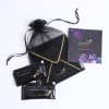 A Kalamkari trunk showcases intricate designs with a modern twist. Fragrant tuberoses, Kamini, and pink-sprayed water lilies add floral grace, while an Acrylic Shubh Labh plaque offers blessings. Paired with Lily of the Valley incense sticks, plus canisters of Thai chili cashews and peri-peri almonds, this is a refined tribute to divine abundance.