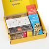 This hamper is a perfect way to express your love and appreciation for your bhaiya on Bhai Dooj. Packed in an eco-friendly box, you'll find a delightful assortment of treats and traditional items. Indulge in the rich flavours of salted and roasted almonds, as well as the spicy goodness of black pepper cashews, perfect for sharing with your dear brother. The hamper also includes a selection of assorted laddoos, a beloved Indian sweet, symbolizing the sweet moments you've shared. To complete the traditional ritual, the hamper includes roli-chawal in a silver-polished container.