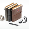 Take control of your day with this Ultimate Organizer A5 Premium Planner Notebook. Crafted with 100 GSM cream paper, it includes two 40-sheet books featuring information, ruled, plain, dotted, and perforated pages to suit all your planning needs. Encased in a leather-look PU cover, it boasts card holder pockets, two SIM card slots, a pen loop, and secure elastic binding with a closure. Stylish and functional, it is the perfect planner for work, travel, or daily organization. Personalize the planner with your brand logo and gift it to your vendors, clients, and employees.