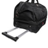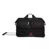 Designed for effortless travel, this 47 liter unisex black double-decker duffle bag blends style with function. Corrosion-resistant handles and ergonomic trolley wheels ensure durability and smooth mobility. The inbuilt organizer keeps your essentials neatly arranged, while quick-access pockets provide convenience. A hardback separate storage compartment adds extra protection for your belongings. Finished with premium metal zip pullers, this trolley duffle is the perfect companion for any journey. Personalize the bag with your brand logo and gift it to your vendors, clients, and employees.