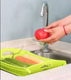 This 2 in 1 washing plus chopping board is what your kitchen needs! Its collapsible design makes washing vegetables and fruits extremely convenient. So now, wash and chop your veggies, and fruits all in one with this multipurpose chopping board. Work fast, and save time! You can also hang the board over the sink to let the water drain while you meal prep. It is lightweight and portable so you can comfortably carry it to the sink and the counter. It is space saving and comes with easy storage. It is made of high quality plastic and is sold as a single piece.