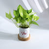Bring a refreshing touch of greenery and positivity to any space with this elegant money plant in a premium ceramic planter. Resting gracefully on a sturdy wooden base, the planter features an empowering message that adds a modern and inspirational accent to the decor. Known for symbolizing prosperity and positive energy, the money plant makes a meaningful addition to homes, desks, or workspaces. It's stylish and symbolic and a wonderful way to brighten spaces and share good wishes for growth and success. - Money Plant - Features: - Material: Ceramic Planter with Wooden Base - Size: 7.6 x 10.6 cms - Plant Height: 11.4 cms