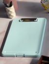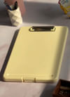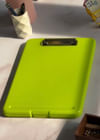 A perfect companion!This writing pad with storage is a great pick for everyday office or schoolgoers. Engineered with high-quality polypropylene, it helps to keep the papers from getting indented. It comes with a heavy-duty spring-loaded metal clip with a plastic grip to prevent damage to documents. The slim profile fits into briefcases, handbags, and backpacks.It has a smooth surface for easy writing and has ample space to store pens, paper, pencils, crayons, sketch pens, markers, craft supplies, etc.It comes as a single piece in assorted colors.